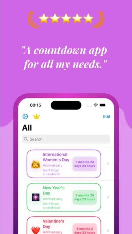Beautifully Intuitive: Enjoy a sleek, user-friendly interface that makes managing countdowns a breeze.