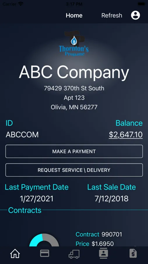Information at your fingertips! This app gives you direct access to your account balance, location and contract information. It also gives you the ability to store and process payment and request service work and deliveries directly through the app.