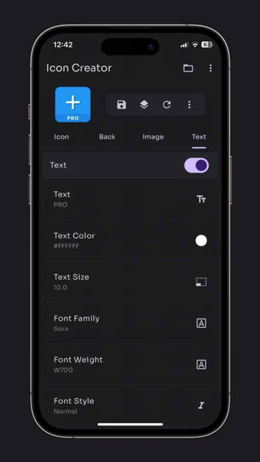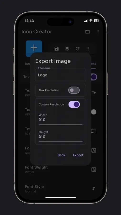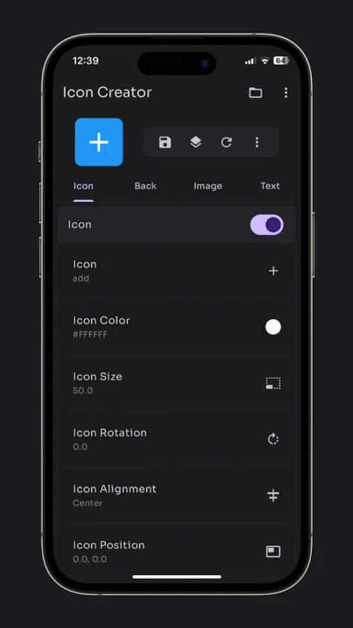 Icon Creator is a comprehensive tool designed to simplify the process of creating icons and logos. With an extensive library of icons, intuitive search functionality, and a range of customization options, users can easily tailor their designs to suit their needs. Modify properties such as alignment, position, rotation, opacity, size, and color, with additional features including icon shadows, backgrounds, and borders. Users can also leverage background color customization, gradients, and images, alongside options for border shapes and styles. Incorporate images from the gallery with customizable fit, filters, and borders, or add text with font selection, weight, style, spacing, and shadow effects. The app supports layering of icons, images, and text, with the ability to adjust layer order and even pick colors from existing images or invert them.