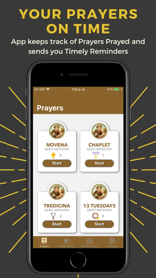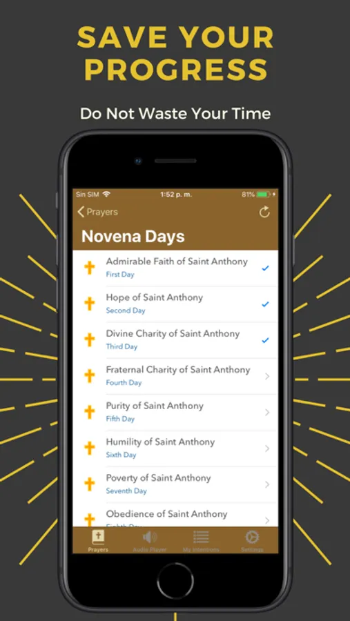 Novena, Chaplet, Tredecina and 13 Tuesdays to Saint Anthony of Padua. This app allows you to pray the Novena daily and record your progress to help you easily continue the next day. Save your own prayers by adding a photo to make it easier for you to make your requests every day.