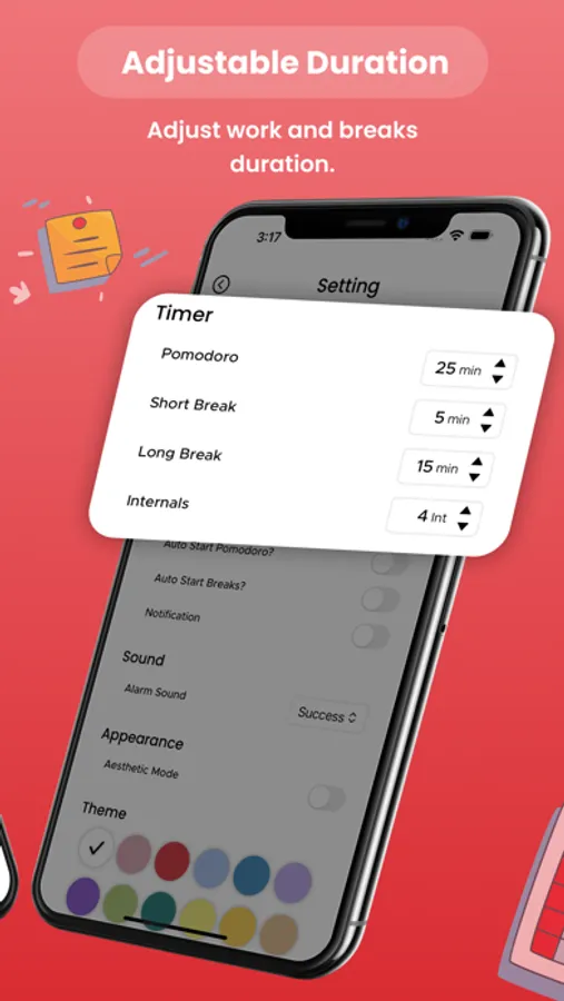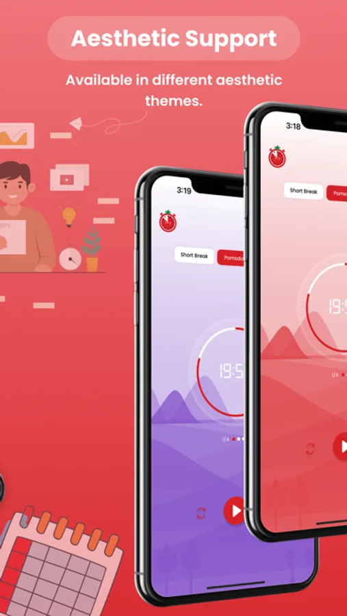 - Manage focus time, short breaks, long breaks and intervals to match your workflow.