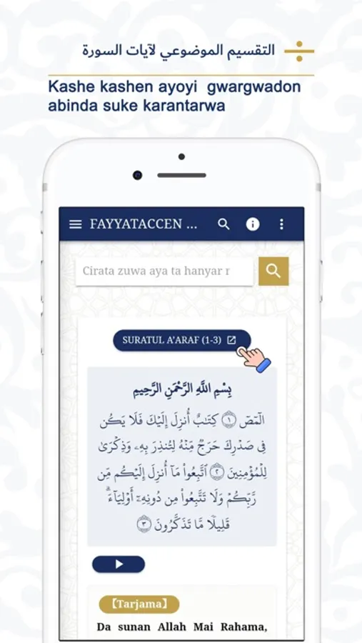 Samun damar bincike a cikin ayoyin alƙur'ani da tafsiri da fassara