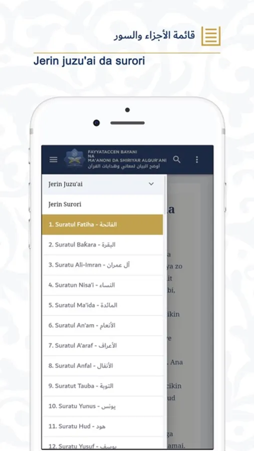 - تصفح الآيات من خلال اسم السورة و رقم الآية.