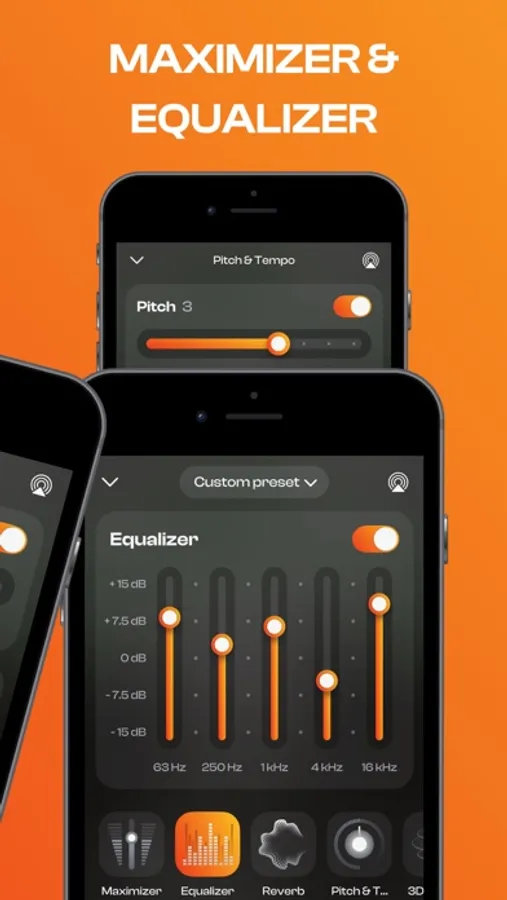 Bass Booster & Sound Equalizer is an advanced audio tool that lets you precisely control your sound output. It offers features such as bass enhancement, sound equalization, volume amplification, and various customizable audio effects, designed to improve the playback quality of music and audio on your iPhone.