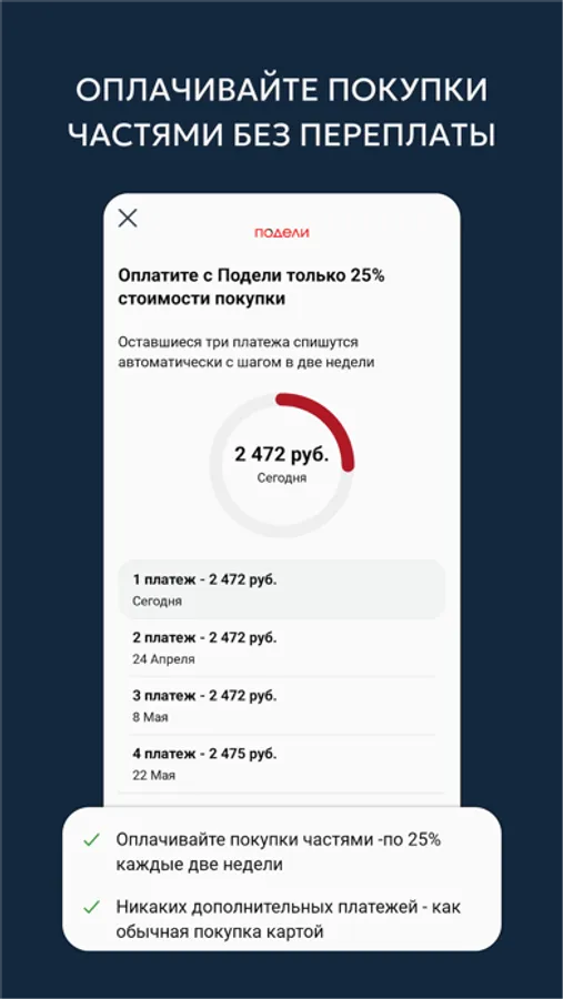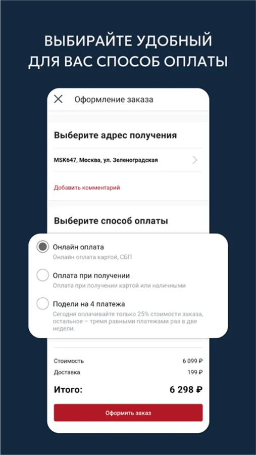 ⁃ Доступна оплата частями, онлайн оплата, СБП, наличными или картой при получении.