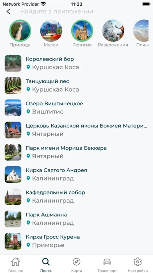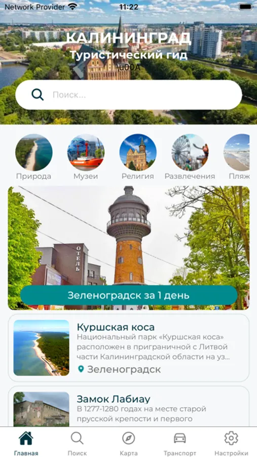 Интересные места: Более 400 тщательно отобранных достопримечательностей, исторические здания, включая музеи, памятники, кирхи, храмы, парки и другие уникальные места Калининградской области. Каждое место сопровождается детальным описанием и фотографиями.