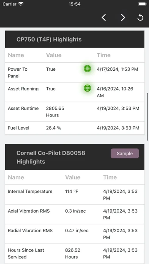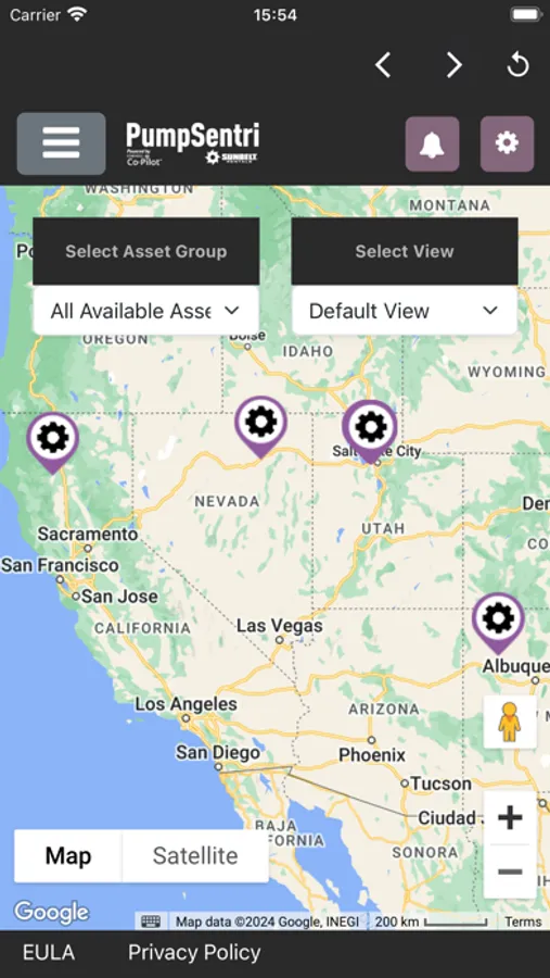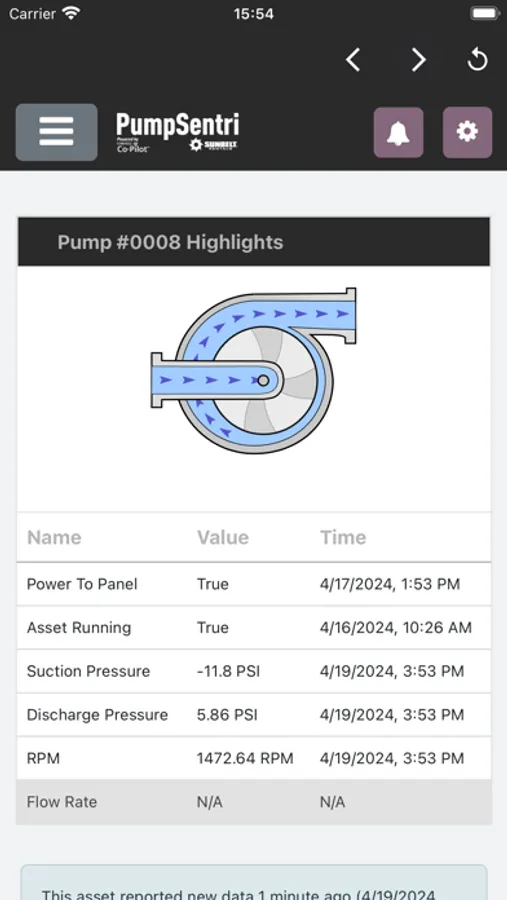 • View the status of pumps (and other assets) and their connected sensors.