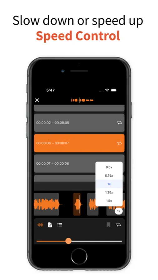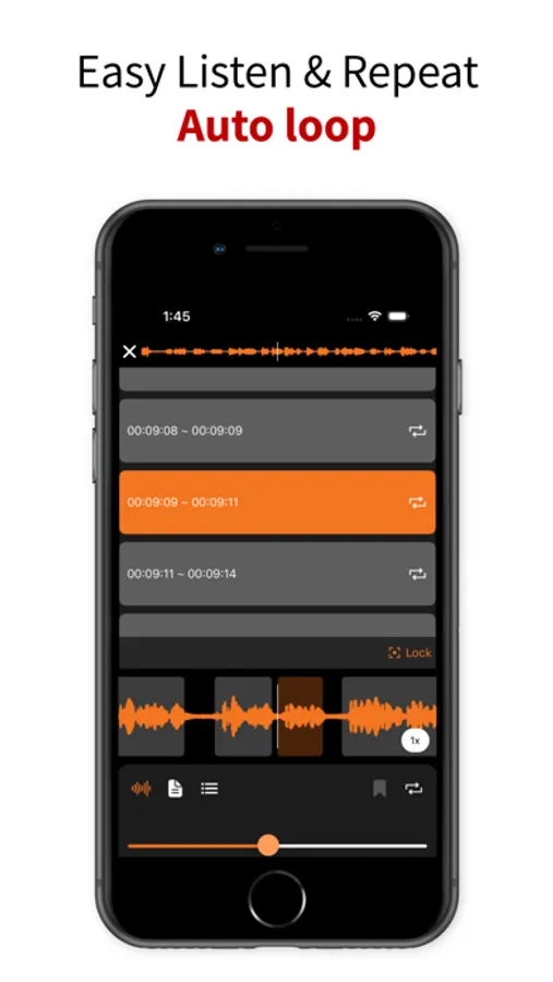 Segment looping: Loop any section as many times as you like to lock in pronunciation and rhythm.
