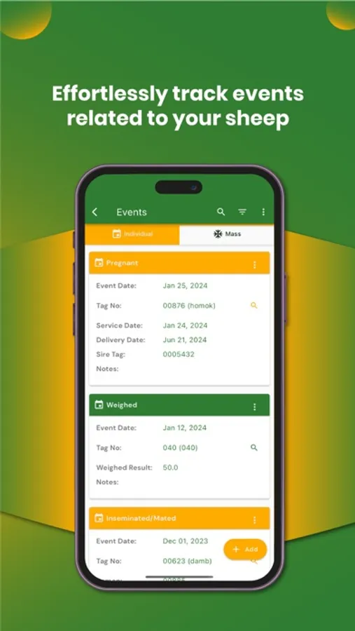 Organize sheep into custom groups by age, location, health status, or breeding cycle. Manage your flock efficiently in seconds.