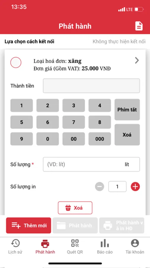 - App phát hành và in tem vé, biên lai, xăng dầu