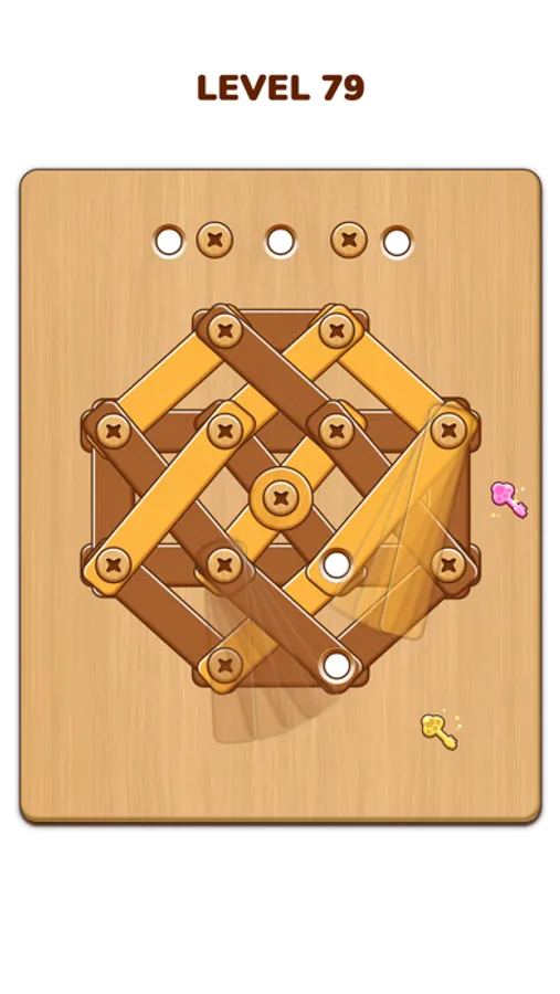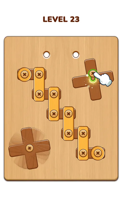 Start by tapping to remove nuts and bolts, making the wood plates pinned to the board to cascade. The complexity of the nuts and bolts within this puzzle game will test your wit.