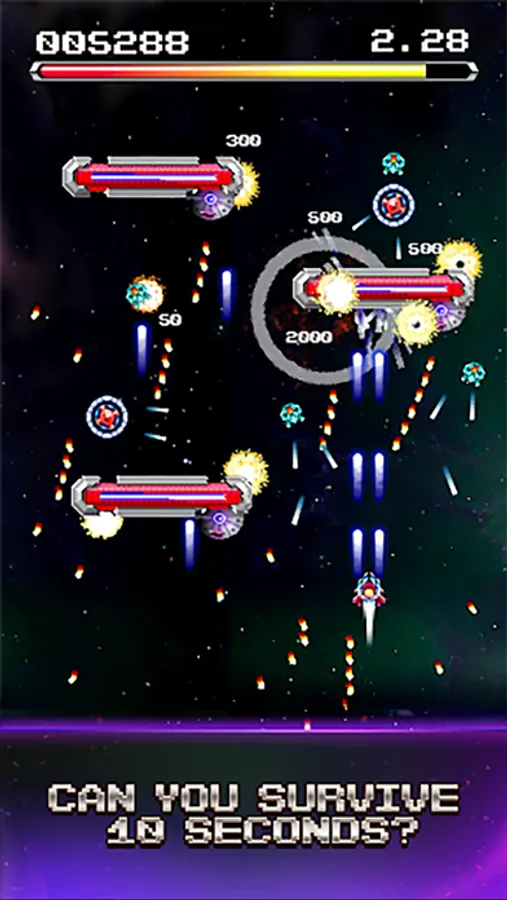 Space Rush - compacts classic arcade shoot 'em up action into bite-size 10 second missions. No messing about, just straight into the action. Bright, colourful graphics combine with a modern take on some classic gameplay elements to give you a great little time killer that is a joy to play and offers a real challenge to anyone.