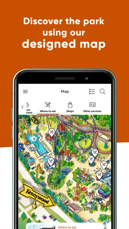 - Explore the amusement park with an interactive map that'll make finding your favorite rides, restaurants, and park services easier than ever!