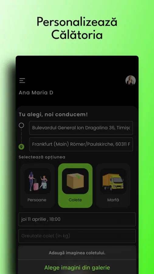 Suntem singura aplicație din România care integrează atât transportul persoanelor cât și expedierea coletelor într-un serviciu "door to door" dedicat diasporei românești.