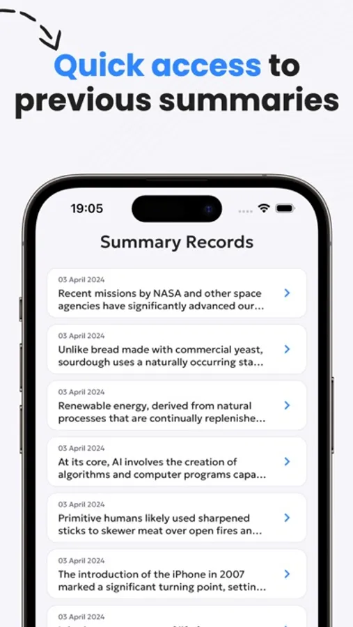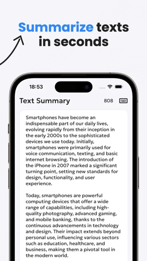 Our app harnesses the latest AI technology to provide you with summaries that capture the essence of any text. With just a few taps, you can transform articles, papers, and documents into a summarized format, saving you hours of reading time.