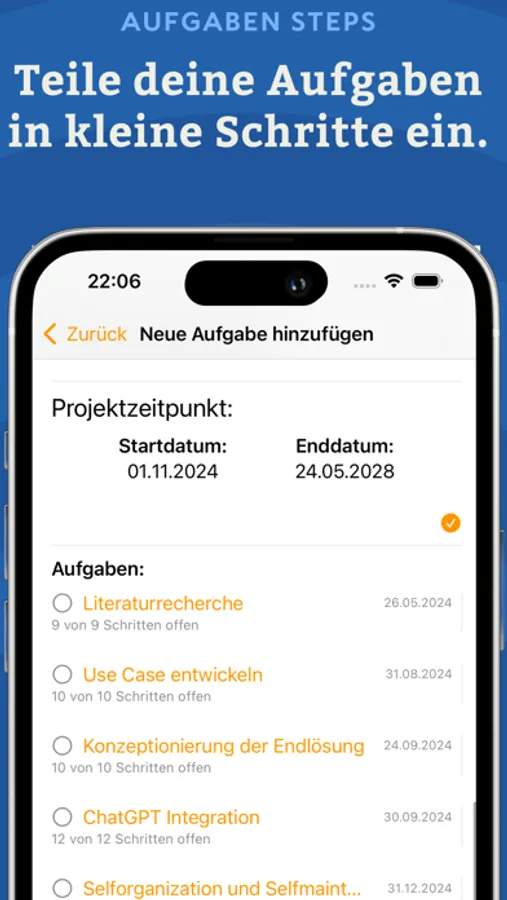 Verlieren Sie nie wieder den Faden. Unsere übersichtlichen Darstellungen helfen Ihnen, den Fortschritt Ihrer Projekte im Auge zu behalten und rechtzeitig fertig zu werden.