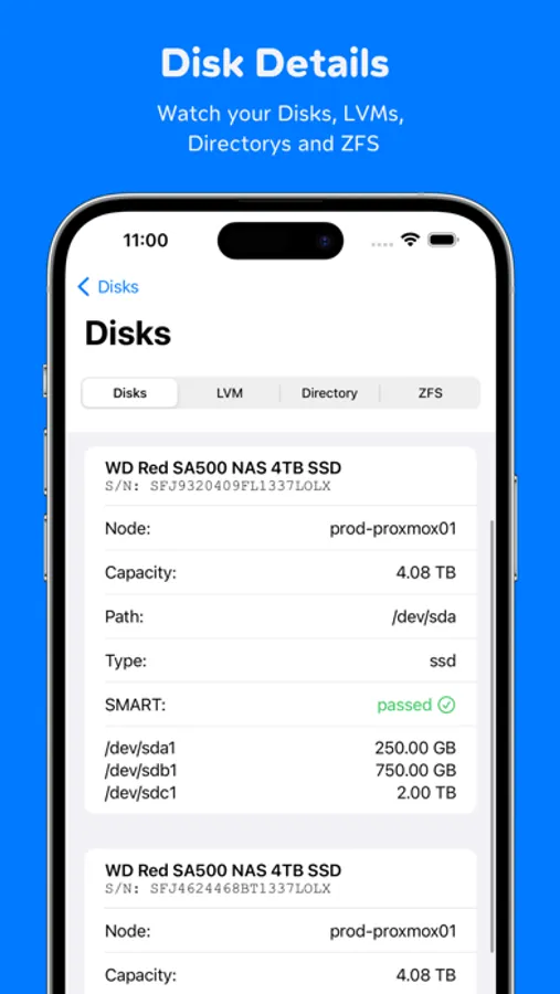 • View disks, LVM, directories, and ZFS