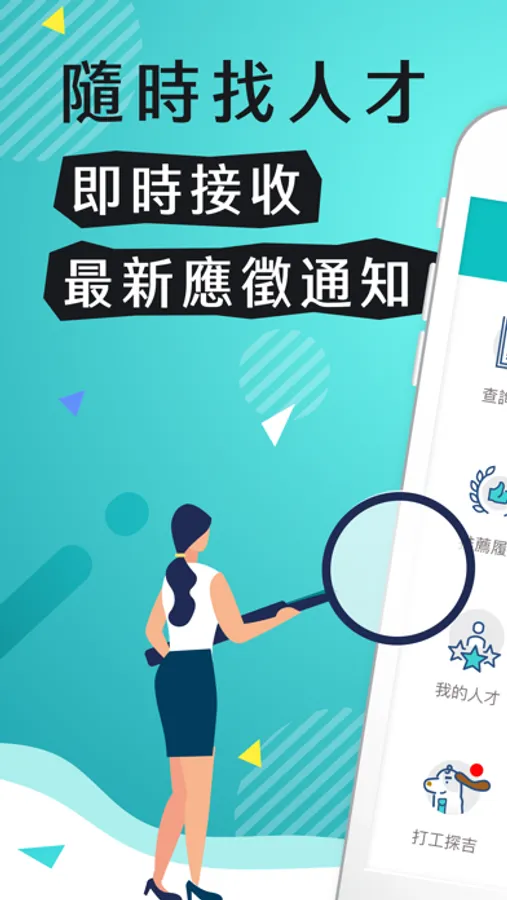 104人才快找APP是專為HR招募設計,讓您運用手機的便利性,隨時找人才,即時接收最新應徵通知,更可透過視訊面談,提升您的招募效率。