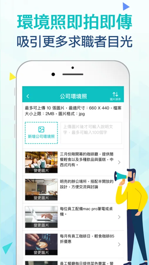 公司特色完整說明、善用標籤更凸顯,新增修改很輕鬆、拍照上傳就搞定。