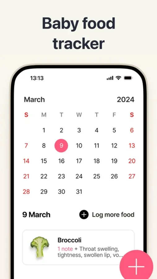 - A baby food tracking feature, perfect for monitoring introduced allergens and jotting down observations.