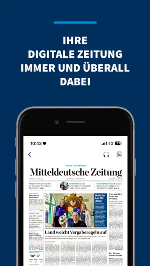 Laden Sie sich jetzt kostenlos die MZ-App aus dem App Store herunter und testen Sie die digitale Zeitung der Mitteldeutschen Zeitung!