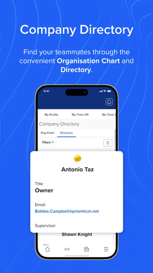· Request time off, view time off balances, time sheets and work schedules. · Find your teammates through the convenient org chart and directory.