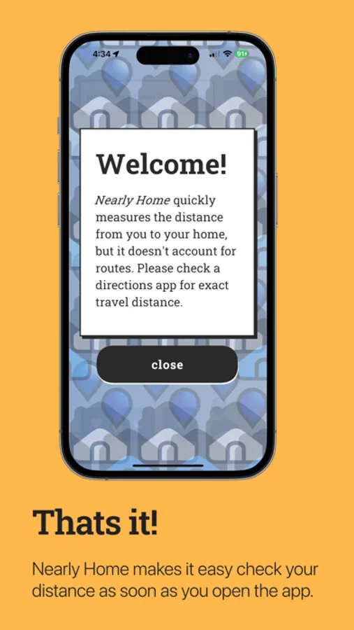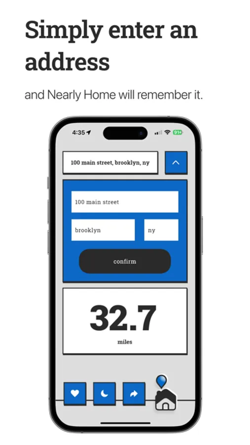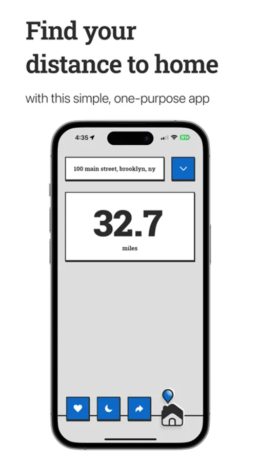 Nearly Home remembers your home address so that your distance is always just a quick app launch away. Perfect for daily commutes, travel, or if you just love knowing exactly how far you've roamed.