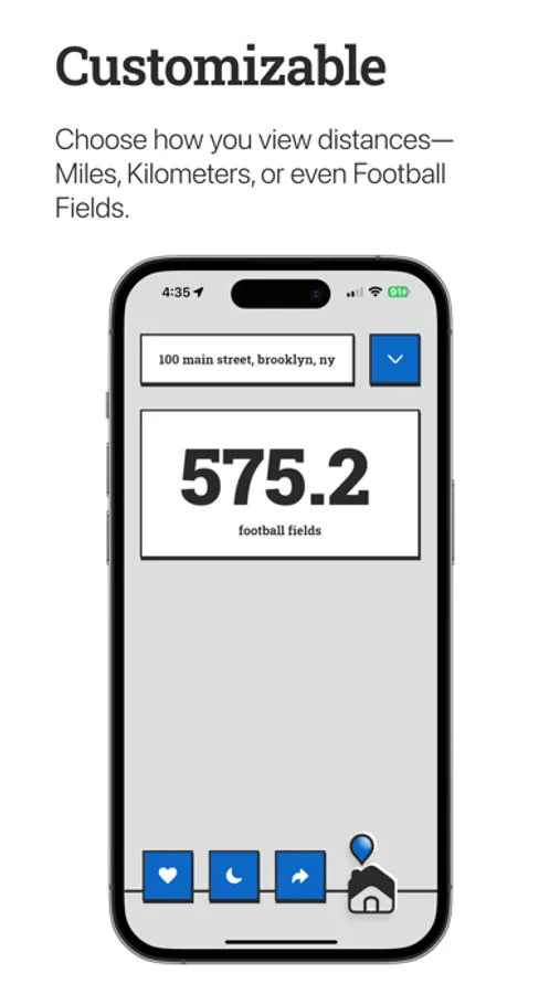 - Customizable Display: Choose how you view distances—Miles, Kilometers, or even Football Fields.