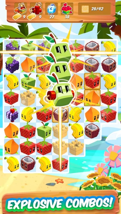 Match, drag and maneuver the juicy cubes to create cascades of awesome explosions! Use boosters and fruit bombs to overcome challenging levels. Embark on this journey with friends as you slice your way through 700 levels and explore sunny tropical islands filled with cute and crazy characters!