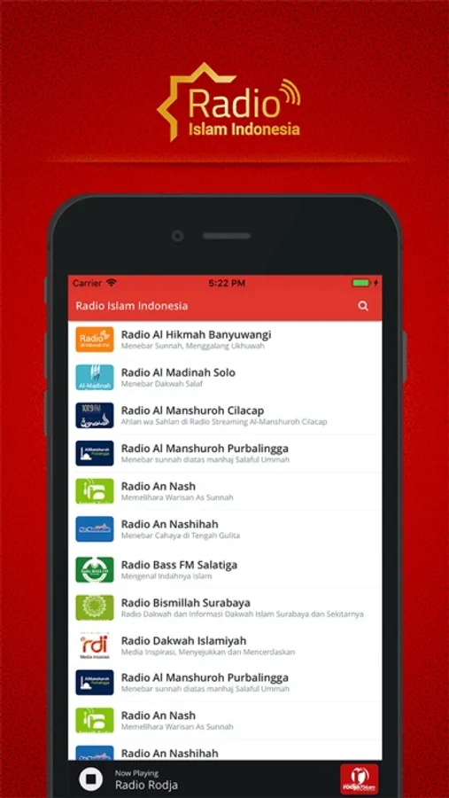 Tersedia beberapa channel radio yang bisa didengarkan, termasuk didalamnya Radio Rodja, Radio Muslim, Radio An Nash, Hang FM, dan lainnya.