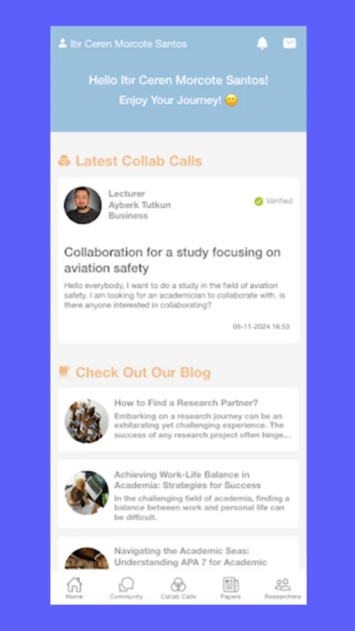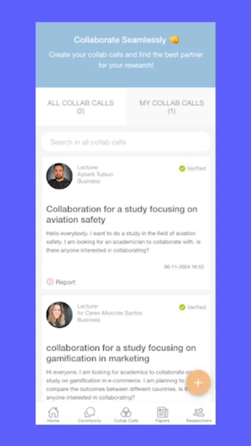 2. Creating Collaboration Calls: Initiate collaboration calls and forge partnerships for research projects directly within the app. Seamlessly communicate with potential collaborators, discuss project ideas, and solidify partnerships.