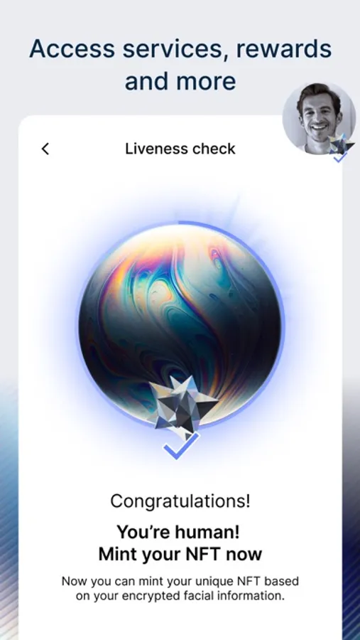 Validate your human likeness through facial biometrics to generate a unique NFT—your personalized proof of human identity.