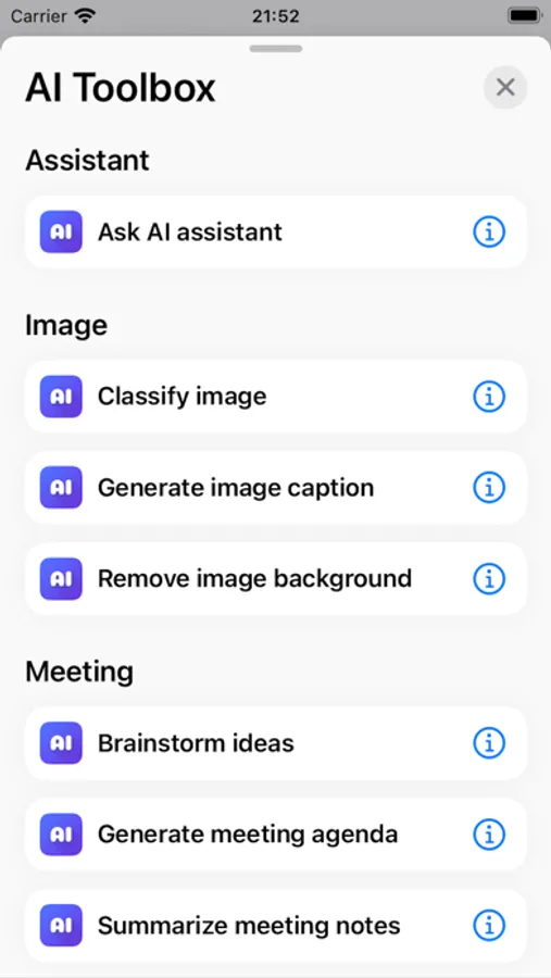 Welcome to AI Shortcuts Actions – your ultimate AI companion for iOS! Our app is designed to seamlessly integrate with your iOS device, offering a wide range of AI-powered intelligent actions for shortcuts. These actions can automate complex tasks, streamline your workflow, and supercharge your iOS experience to boost your productivity.