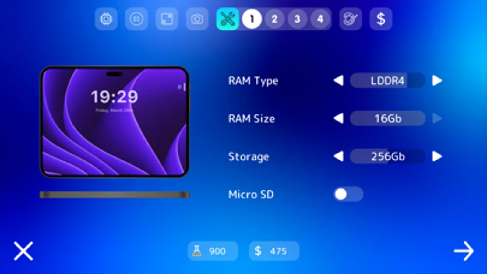 Mobiles Tycoon gives you almost complete freedom of action. Create smartpones and tablets from scratch by selecting the desired characteristics and design. The game has a lot of features that are not found in other games of this genre, such as Smartphones Tycoon or Devices Tycoon: detailed statistics of your company and products, intelligent algorithms for evaluating products and behavior of companies, interactive operating systems created by the player that you can test.