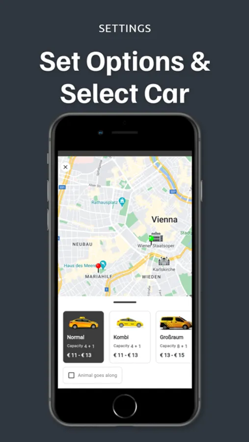 Finden Sie mit der EOS Taxi App sofort ein Taxi in Wien. Wählen Sie den Taxityp sowie Start- und Endziel und werden Sie sofort dem nächstgelegenen Taxi zugeordnet. Erleben Sie ein tolles Reiseerlebnis mit Bewertungen, Kommentaren und vielen weiteren Features am Ende der Reise.