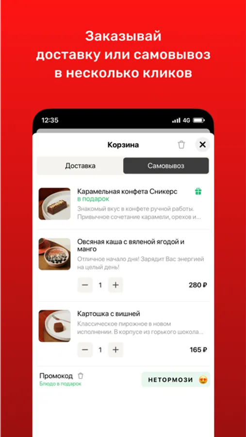 Вкусный кофе и десерты теперь ещё доступнее. Закажи и забери заказ уже через 5 минут. Большой ассортимент еды и десертов. Найдутся завтраки и перекусы!