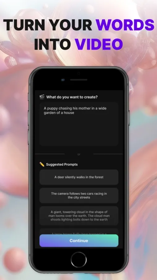 Text into Art: Embark on an innovative journey with our app, where words metamorphose into captivating videos! Unleash your imagination, turn text into masterpieces, and mesmerize your audience.