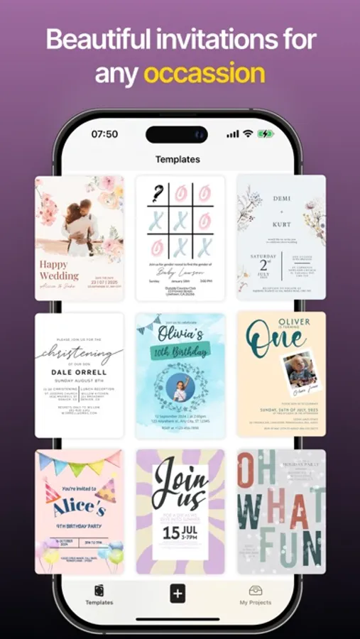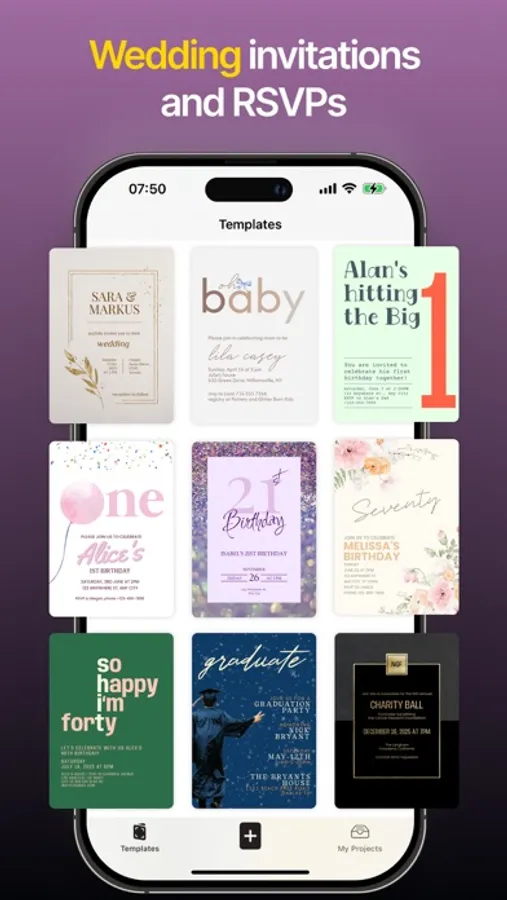 Our app serves hosts and planners of all types of events. Whether you're organizing a small gathering or a grand celebration, Invitation Maker offers the versatility to match the tone and mood of your occasion. From elegant wedding invites to fun party announcements, select the perfect template or create your own exclusive design.
