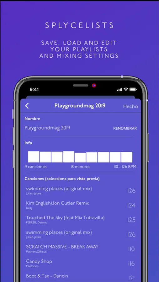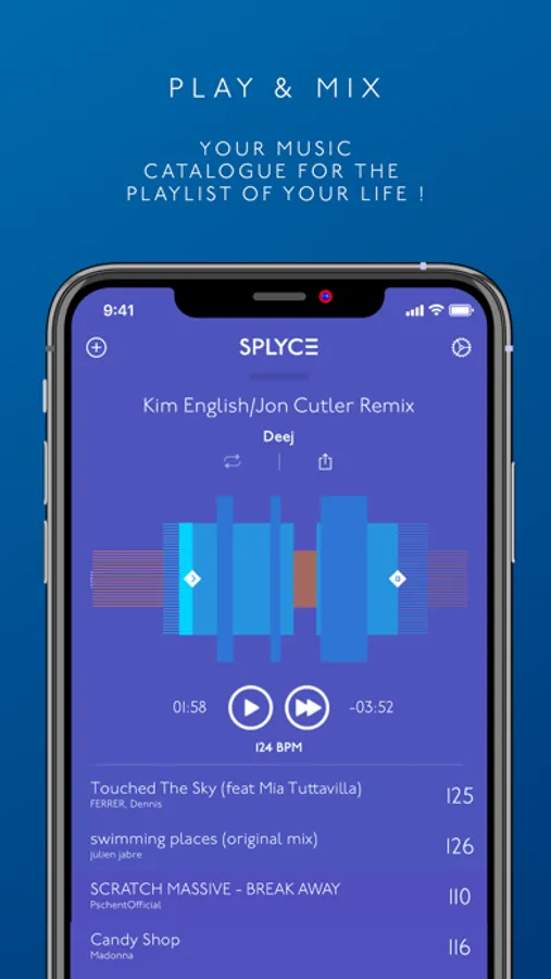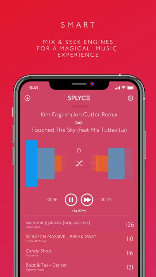 Take the most out of Splyce with the Splycelists: save your playlists and mixing settings and enhance your playlists. Work with more than one and feel the power of the smart length and seek engine. Feel a whole different experience around your favorite music and be the life & soul of the party with Splyce!