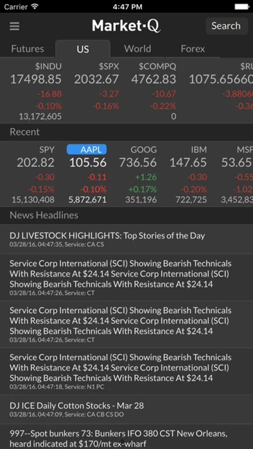 The Market-Q mobile apps allow subscribers access to the same streaming financial market pricing data, historical pricing data, fundamental data, news, charting, analytics found through its desktop counterpart. Market-Q’s portability provides a continuous cross device experience bringing your watchlists, filters and other shared preferences where ever you choose to access Market-Q.