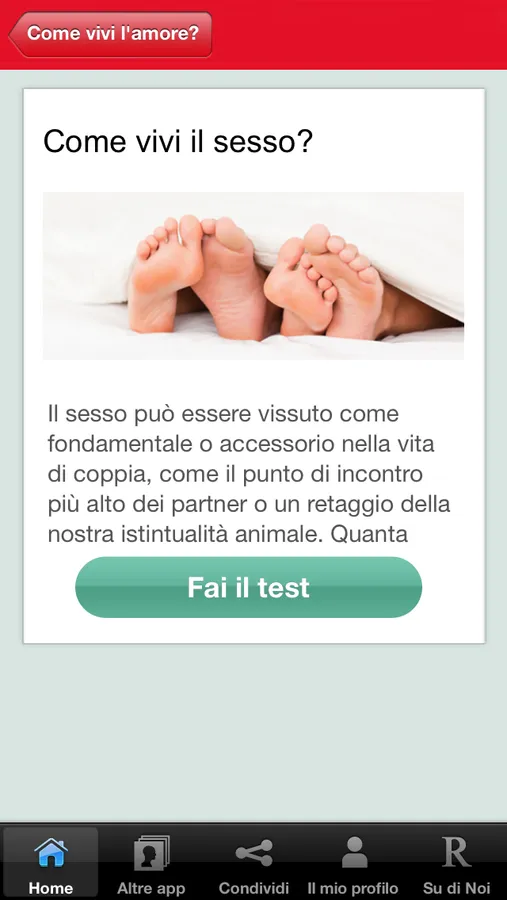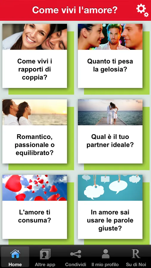 Test psicologici per conoscere meglio te stesso e il tuo rapporto con l'amore. Al termine di ogni test potrai leggere non solo il tuo profilo personale ma anche dei consigli pratici scritti da psicologi e specialisti.