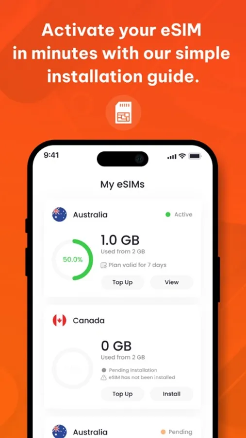 Install Your eSIM: Easily install your eSIM on your device using our simple instructions.