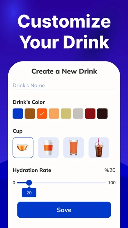 Your water reminder app includes all your preferred cups, standard water bottles, or mugs, offering convenience and flexibility. Plus, the user-friendly interface makes it incredibly easy to log your drinks and track your water.