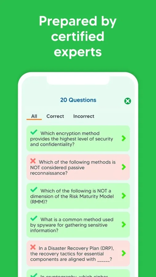 Our CISSP exam prep application is renowned for its focused and thorough content analysis, cutting-edge learning methods, and rigorous precision. We delve deep into every section of the latest exam, consistently refining our material to stay relevant. For both correct and incorrect answers, we offer in-depth explanations to reinforce comprehension of crucial concepts found in the Certified Information Systems Security Professional exam.
