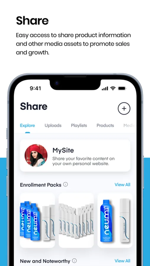 - Easy access to share product information, and other media assets to promote sales and growth.
