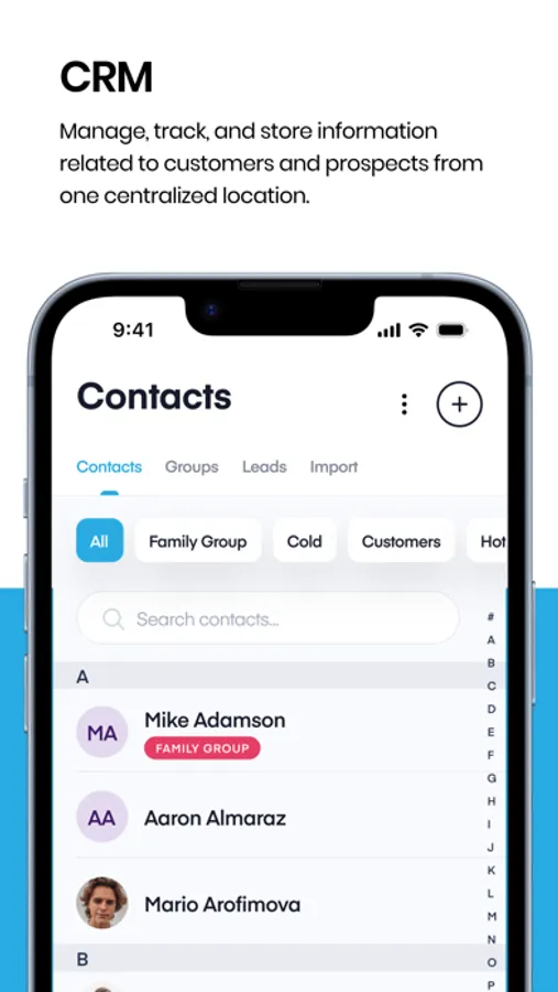 - Manage, track, and store information related to customers and prospects from one centralized location.
