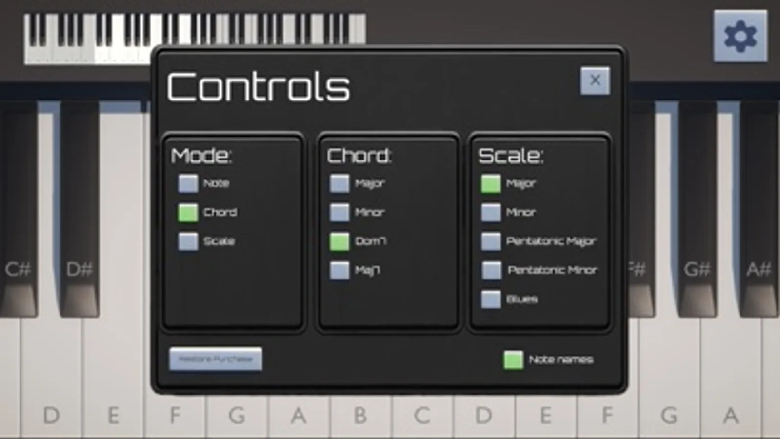 • Note Name Display Option: Note names can be shown directly on keys, accelerating the learning process for beginners and facilitating quick note recognition.
