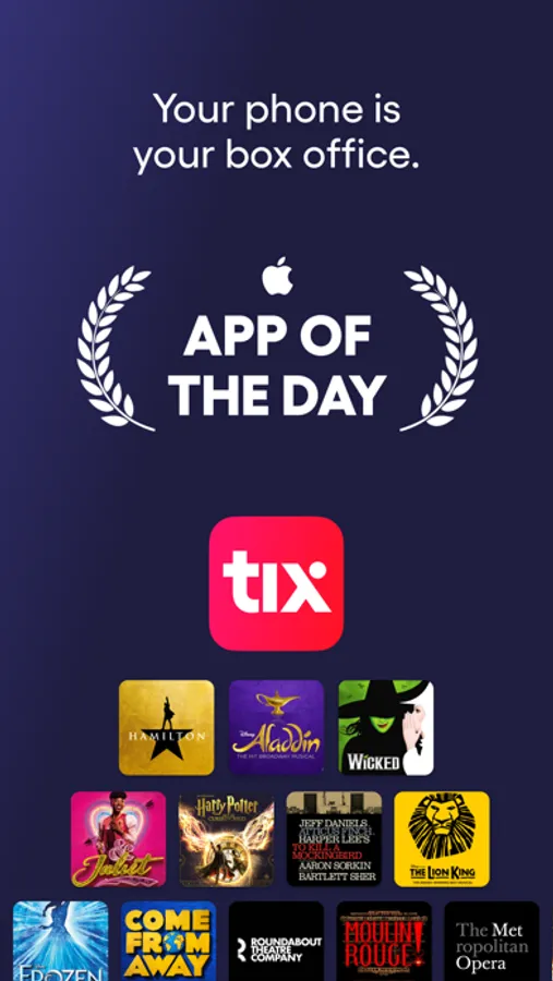 TodayTix is the first app of its kind in the theatre industry. Created by Broadway producers in 2013 and initially launched in New York City, the app is now available from London to Washington DC and from Los Angeles to Sydney.