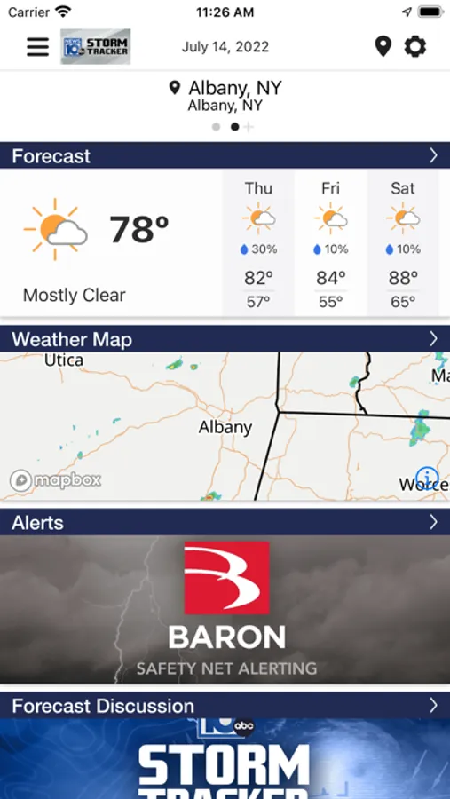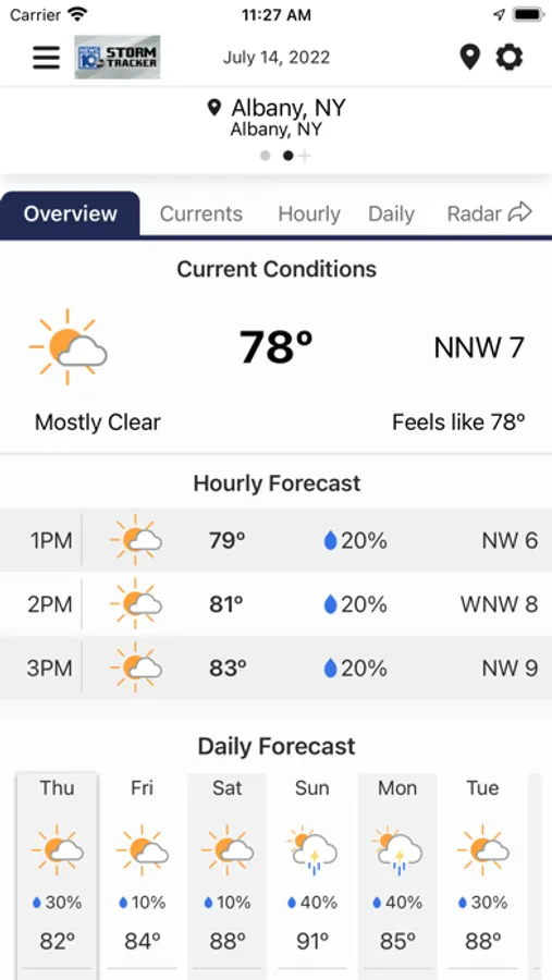 Never let the weather catch you by surprise again. Your Storm Tracker Team delivers Albany, New York's most accurate hour-by-hour forecast for the next day and for the week ahead. Unlike other weather apps, you'll get a local forecast that is customized for you.