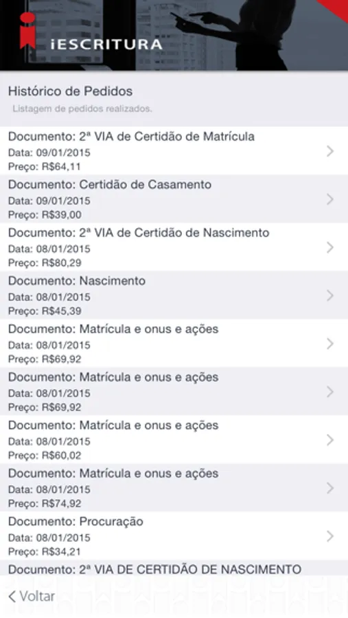 Com o iEscritura você consegue fazer o pedido de segunda via certidão, pagamento e escolhe o endereço a ser enviado o documento solicitado, tudo muito prático e rápido.